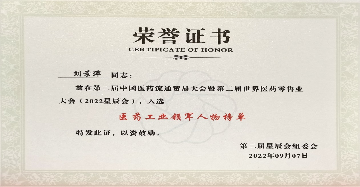 本次星辰会期间,PT视讯斩获颇丰,获得多项行业奖项及荣誉。在开幕式上,刘景萍董事长荣获“医药工业领军人物”称号。