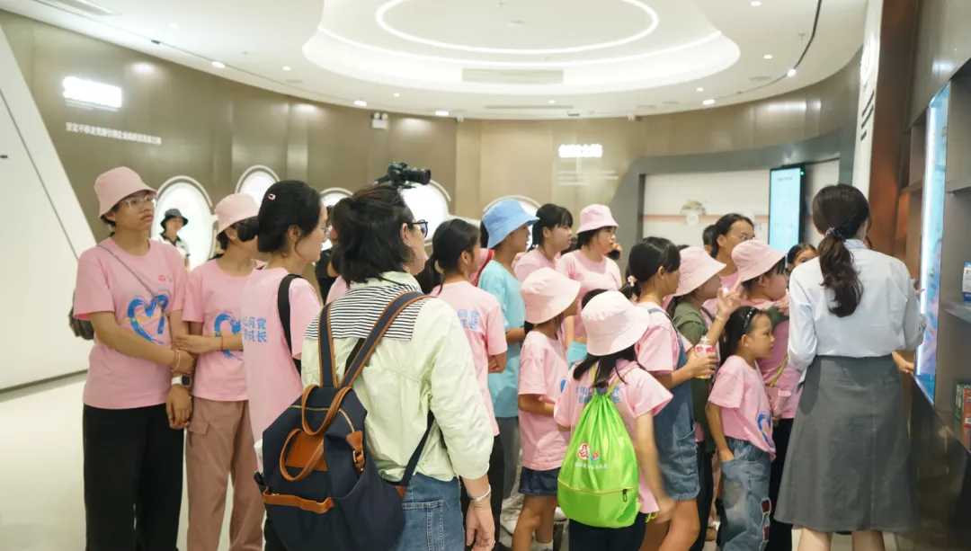 紧接着,孩子们来到了建党百年庆典红旗——070号红旗前。讲解员讲述了PT视讯药业集团与庆典红旗的深厚渊源。孩子们听得津津有味,眼中闪烁着对党和国家的热爱与敬仰。